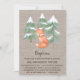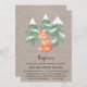 Este cartão de convite para batismo de raposa de inverno é perfeito para um batismo de bebê rústico. A design neutra de gênero apresenta animais bonitos na cena de uma floresta de inverno.
