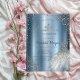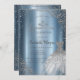 Vestido prateado, tiara e diamantes em um fundo metálico azul.