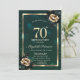 Um convite moderno, chico e glamouroso com rosas elegantes sobre fundo verde.