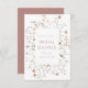 Um elegante chá de panela de flor silvestre de quadro floral. Este chá de panela apresenta uma elegante estrutura floral com tons de terra cor-de-rosa e castanho neutro. Todo o texto na parte frontal e traseira da placa pode ser personalizado para compartilhar todos os detalhes do seu chá de panela.