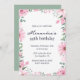 Elegante Floral Frame Rosa Verde 99.º aniversário Convite para aquarela