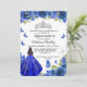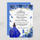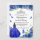 Celebrar o encanto da sua Quinceañera com o nosso belo convite azul real à Floral adornada com borboletas delicadas e um motif da coroa real. O fundo azul empoeirado define o tom perfeito para a ocasião.
