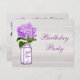 Convites de festas de aniversários rústicos roxos e cinzentos elegantes do país para mulheres e adolescentes com um frasco de pedreiro roxo e branco bonito da bola de vidro e uma ilustração roxa bonito da flor do vintage do hydrangea em um fundo de madeira cinzento do efeito do chique à moda. Moderno elegante, na moda, elegante, feminino convida perfeito para o primavera, o verão, a queda/outono e os eventos do inverno. Todo o texto pode facilmente ser personalizado para encontrar suas necessidades e você pode mudar o estilo, a cor e o tamanho de pia batismal da pia batismal se você deseja. Se você precisa algum auxílio que personaliza seu produto me contacta por favor através de minha loja e eu estarei feliz ajudar. NOTE POR FAVOR: Tudo convida em Zazzle tem imagens impressas do plano.