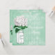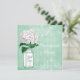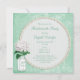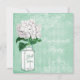 Convites feitos sob encomenda verdes e brancos da hortelã elegante da festa de solteira com um frasco de pedreiro branco e verde bonito da bola de vidro e uma ilustração branca bonito da flor do vintage do hydrangea em uma colagem antiga à moda do verde da hortelã do chique com as decorações ornamentado brancas bonitas, uma libélula, e escrita desvanecida em um teste padrão à moda do harlequin. No reverso do convida é pérolas brancas impressas glamoroso e esteira do laço com texto para que você personalize com seus detalhes do partido. Elegante, na moda, elegante, moderno convida perfeito para o primavera, o verão, a queda/outono e os eventos do inverno. Todo o texto pode facilmente ser personalizado para encontrar suas necessidades e você pode mudar o estilo, a cor e o tamanho de pia batismal da pia batismal se você deseja. Eu tenho produtos de harmonização do casamento em minha loja. Se você precisa algum auxílio que personaliza seu produto me contacta por favor através de minha loja e eu estarei feliz ajudar. Esteira da pérola pelo ©Hazel Kinvig-Paul www.design-a-dream.co.