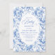 Convite French Toile de Jouy Blue Roses Baby Shower Invite