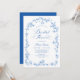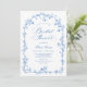 Classic blue and white florals frame this bridal shower invitation with a refined vintage feel. Inspired by French wildflower toile, the elegant arch design blends Victorian romance with subtle chinoiserie details. A timeless floral invitation perfect for an elegant bridal shower celebration.