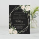 Este convite de casamento para o marfim floral moderno e elegante é perfeito para um casamento rústico. A design apresenta flores rosa de cor branca marfim com de cor aquosa com folhas verdes de eucalipto bem arrumadas em buquês que chamam a atenção. Salve o papel, incluindo mais detalhes na parte traseira do convite em vez de em uma placa de gabinete separada.
