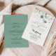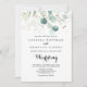 Este rusticado convite para casamento floral de ouro eucalipto e frente é perfeito para um casamento simples. Este design artístico apresenta folhagem verde de ouro desenhado à mão e cor d'água eucalipto, inspiradora beleza natural. Salve o papel, incluindo mais detalhes na parte traseira do convite em vez de em uma placa de gabinete separada.