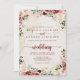 Este convite para casamento floral de verão é perfeito para um casamento simples. A design apresenta flores de aquarela, cor-de-rosa e borbulhante, com folhas verdes em fundo castanho manchado. Salve o papel, incluindo mais detalhes na parte traseira do convite em vez de em uma placa de gabinete separada.