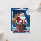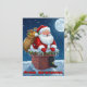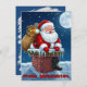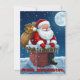 „Fröhliche Weihnachtskarte mit dem Weihnachtsmann, der fröhlich aus einem Schornstein auf dem verschneiten Dach eines Hauses klettert. Umgeben von winterlicher Nacht, funkelnden Sternen und festlicher Stimmung vermittelt das liebevolle Cartoon-Design pure Weihnachtsfreude. Perfekt geeignet, um Familie, Freunden oder Kindern frohe Weihnachten zu wünschen und ein Lächeln zu verschenken.“