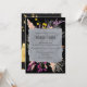 Misturando elegantemente elementos contrastantes, este convite de casamento impressionante apresenta um design floral vibrante e multicolorido florescendo contra um fundo preto profundo. Encaixado dentro de uma borda de concreto atemporal, a fonte elegante do cartão adiciona um toque de sofisticação moderna, prometendo uma celebração memorável de amor e alegria.