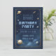 Transporte seus convidados aos confins da galáxia com essa sofisticada borda cósmica. Contra um fundo azul-navy rico e texturizado, uma borda de linha dourada ornamentada com acentos celestes nos cantos emoldura um foguete dourado que dispara para o alto e uma coleção de motivos de planetas pontilhados. Uma nuvem de nebulosa azul brilhante na base e uma dispersão de estrelas delicadas criam uma sensação de profundidade e maravilha vintage. Este layout é a base perfeita para um convite de aniversário no estilo do espaço sideral. Use esse floreio galáctico para garantir que sua correspondência chegue com uma assinatura de espírito aventureiro e elegância atemporal, seja para um aniversário marcante ou um evento celestial de alto nível.