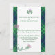 Concebido para amantes da Escócia e da cultura escocesa em toda a parte. Todo texto é totalmente personalizável. A flor e o emblema tradicionais da Escócia, o palito e este, combinados com o delicado fundo de um tartan escocês verde, garantem que este belo convite mostra um amor e respeito por todas as coisas escocesas. Adequado para casamentos, noivados, batizados, aniversários e muitos outros eventos. Seus usos são limitados pela sua imaginação.