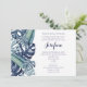 Uma bela seleção de folhagem tropical monocromática azul com palmeiras e folhas de monstera. Fácil de personalizar com as informações da sua festa Parte de nossa coleção 'Folhagem Tropical Azul'.
