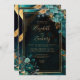 Convite Frota Dourada de Agato Teal Floral Código QR Casam