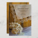 Convide convidados para comemorar que estão noivos para se casarem com o casual, mas clássico, Convite de festas de Raça do País e Flores. Esta festa informal e elegante do estilo rancho apresenta uma fina fotografia floral de madeira marrom rústica, um lenço branco vintage aparado de linho, flores silvestres secas, colar de pérolas e um véu branco. Inpo perfeito para o seu evento relaxado de celebração de um celeiro.