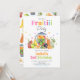 Arrume uma vibrante e suculenta festa de aniversário com este Convite de Aniversário Fruitti. Apresentando ilustrações coloridas de frutas tropicais, suco refrescante em um copo e frutas cortadas em um lançador, este convite define o clima para uma celebração doce e ensolarada. Deixe a sua festa brilhar com diversão frutuosa e convide convidados para uma celebração que é tão doce e colorida quanto a sua pequena! BRT346