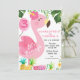 Fruta de Folhagem Flamingo Cor-de-rosa Flamingle Aniversário Convite vamos de aniversário extravagante, com um grande flamingo rosa, balão rosa, algumas frutas e folhagem tropical. Este convite de aniversário do flamingo de vamos é uma forma colorida de estabelecer a cena de uma festa de aniversário de uma garota com tema flamingo.