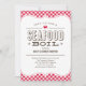 Os frutos do mar fervem convites com caranguejo e um tecido de mesa vermelho. Personalize o texto do convite para ajustado das suas necessidades.