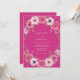 This design features a vibrant fuchsia backdrop that creates a bold and romantic aesthetic. Lush watercolor arrangements of pale pink roses and white anemones with dark centers create a beautiful contrast. Soft grey foliage and delicate floral buds add depth to the overall botanical style.