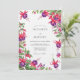 This design features vibrant fuchsia and deep purple blossoms cascading across the composition. The lush botanical elements create an opulent and romantic atmosphere, perfect for a spring or summer occasion. The detailed watercolor style brings a delicate, artistic touch.