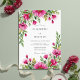A vibrant display of fuchsia blooms and lush greenery cascades across this design, creating a lively and romantic atmosphere. The rich pink hues are complemented by fresh green leaves, evoking a sense of natural beauty. Perfect for a spring or summer occasion.