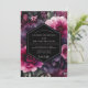 Evoke a sense of dramatic romance with this elegant and moody floral design. A lush arrangement of painterly peonies and roses blooms in rich shades of fuchsia, magenta, and deep plum. Set against a dark, shadowy background, the vibrant blossoms create a stunning and passionate atmosphere for your nuptials.