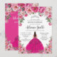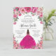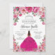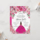 Convite Fuchsia Pink Floral Silver Quinceanera XV Sweet 16