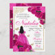 Quinceanera Floral Rosa e Dourada Fuchsia Convite de Aniversário