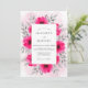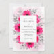 This design features striking magenta blooms that resemble zinnias, surrounded by soft gray foliage. A delicate blush pink watercolor wash adds a dreamy backdrop to the vibrant floral arrangement. The high-contrast palette creates a bold and romantic atmosphere, perfect for a lively seasonal event.