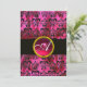 Convite FUCHSIA SEDA PRETA DAMASCO RUBI MONOGRAMA ,branco