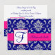 Convite Fúcsia Azul Naval Prata Damasko Save the Date 4A