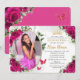 Personalize este convite vibrante de forma fácil e rápida, simplesmente clique no botão personalizar ainda mais para editar os textos, alterar as fontes e as cores das fontes. Apresenta belas rosas fucsias vibrantes, um espaço para colocar a sua foto e borboletas fucsias e douradas. Itens correspondentes disponíveis na loja. (c) Somerset Fine Paperie