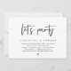 Convite de Fuga de Casamento temático Moderno em Letra Preta (vamos festejar). É perfeito para o seu jantar de recepção de fuga de casamento / festa de celebração pós-casamento. Adicione seus detalhes em fonte / letra preta correspondente.