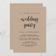 Linda caligrafia moderna casual, em fonte Script preta, em papel de fundo kraft marrom, Anúncio de Fuga de Casamento, cartão de convite (É uma festa após o casamento). Isso é perfeito para o seu reception de casamento e festa de celebração pós-casamento. Adicione seus detalhes na fonte / letra correspondente.
