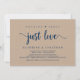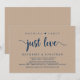 Linda festa Nada sofisticado apenas amor, cartão de anúncio de casamento / convite de fuga, em design moderno rústico Kraft marrom, fonte azul marinho. Isto é perfeito para o seu casamento e festa de celebração pós-casamento. Adicione seus detalhes na fonte / letra correspondente.