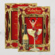 Convite Fun Fabulous Birthday Red Gold Champagne Party