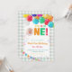 Fun to Be One Birthday Invitation Template, Digital Fun to Be One First Birthday colorful balloons, Green Gingham and confetti with one photo of your choice. Personalize the birthday party invites by adding your child's name, age, and party details.