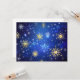 Convite Fundo Azul de Natal com Flocos de Neve Dourados