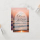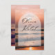 Se você está procurando um casamento na praia, então este é o convite para você. O fundo é de uma cena de praia em cores coral suaves com um pôr do sol à distância.