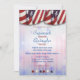 Este bunting vermelho, branco e azul patriótico ao longo da parte superior e estrelas correspondentes ao longo da parte inferior, colocou a design deste convite de casamento. O fundo de ambos os lados é um design vermelho, branco e azul macio. O convite de volta corresponde ao fundo patriótico suave. Personalize a design com seus detalhes de casamento nos campos de modelo.