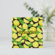 Fatias e folhas de limão. Um padrão perfeito. Cor de fundo personalizada. Texto personalizado em cada lado.