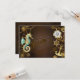 Fundo de madeira castanho com fundo marinho, cordilheira mecânica, volante antigo, âncora de ouro e diversas engrenagens de ouro e latão. Estilo Steampunk.