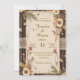 Este convite de casamento rústico apresenta uma borda fina com uma textura de madeira curtida, delicadamente acentuada por flores secas espalhadas e rendas de burlap. Os tons de terra quente criam uma atmosfera confortável, ao estilo do país, perfeita para casamentos de temas rústicos. O centro permanece vazio, permitindo amplo espaço para texto personalizado, fazer-o de uma escolha bonita e personalizável para artigos de papelaria de casamento.