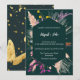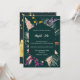 Misturando elegantemente elementos contrastantes, este convite de casamento impressionante apresenta um design floral vibrante e multicolorido florescendo contra um fundo preto profundo. Encaixado dentro de uma borda geométrica atemporal, a fonte estilosa do cartão adiciona um toque de sofisticação moderna, prometendo uma celebração memorável de amor e alegria.