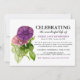 Convite à comemoração funerária, com uma elegante imagem aquática das flores da glória roxa, da folhagem verde e uma celebração do modelo da vida que pode ser facilmente personalizado.