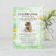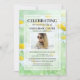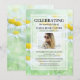 Convite de lembrança de funeral com um doce fundo floral de margaridas, uma foto da pessoa que não está mais conosco e um modelo de celebração da vida que é fácil de personalizar.