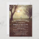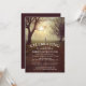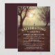 Convite de celebração de vida com funeral com uma trilha rústica, árvores, uma silhueta de espírito e um modelo de serviço memorial fácil de personalizar.