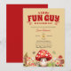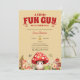 Um Pequeno Cara Divertido Está a Caminho – Convite de Chuvá de Bebê Floresta de Outono com Cogumelo Fofo, Celebre a chegada do seu pequeno com este convite de chuvá de bebê da Floresta de Outono, apresentando um adorável cogumelo vermelho, caracol sorridente, animais da floresta e folhas de outono! Este convite encantador, com o tema da frase divertida "Um Pequeno Cara Divertido Está a Caminho", é perfeito para chuvás de bebê de outono, encontros com tema florestal ou eventos inspirados na natureza. Personalize com o nome dos pais, data, hora e local. Os tons terrosos quentes e ilustrações da floresta criam um ambiente aconchegante e rústico, ideal para uma celebração de bebê ao ar livre ou em ambiente fechado.