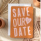 The design uses a vibrant 1970s "groovy" aesthetic, featuring a mix of burnt orange, retro pink, and lavender tones. The suite is built around bold, hand-drawn typography and playful heart motifs that give it a whimsical yet modern feel. Perfect for a contemporary wedding with a vintage twist. Design is completely customizable to fit your needs! Just click the "Edit This Design" button for more options!